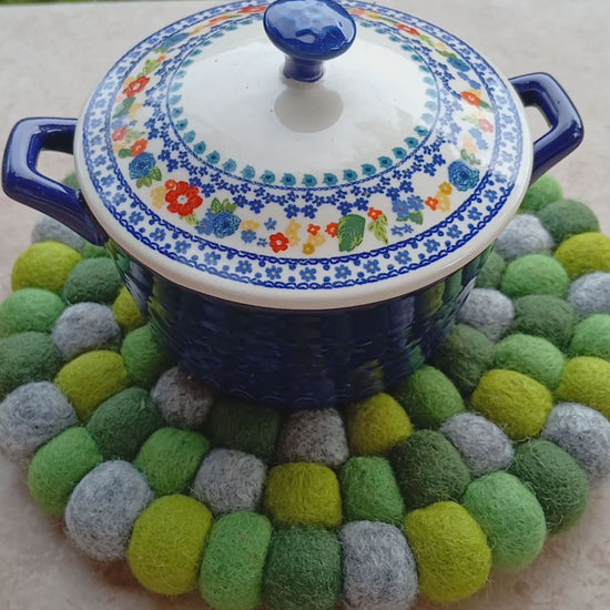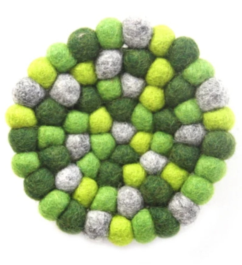 These felt trivets add texture, style and fun pops of color while protecting your dinner table. Crafted from fine New Zealand wool and azo-free dyes using age-old techniques. Handmade in Nepal by a Fair Trade women's cooperative.